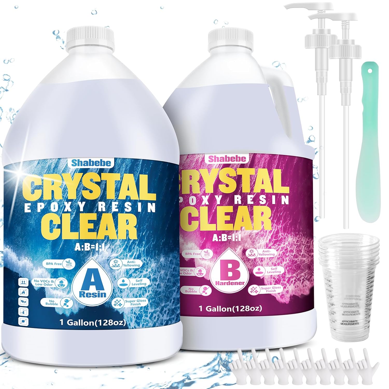 Shabebe Epoxy Resin 2 Gallon Kit, Upgraded Crystal Clear Resin Epoxy Food Safe with Pump