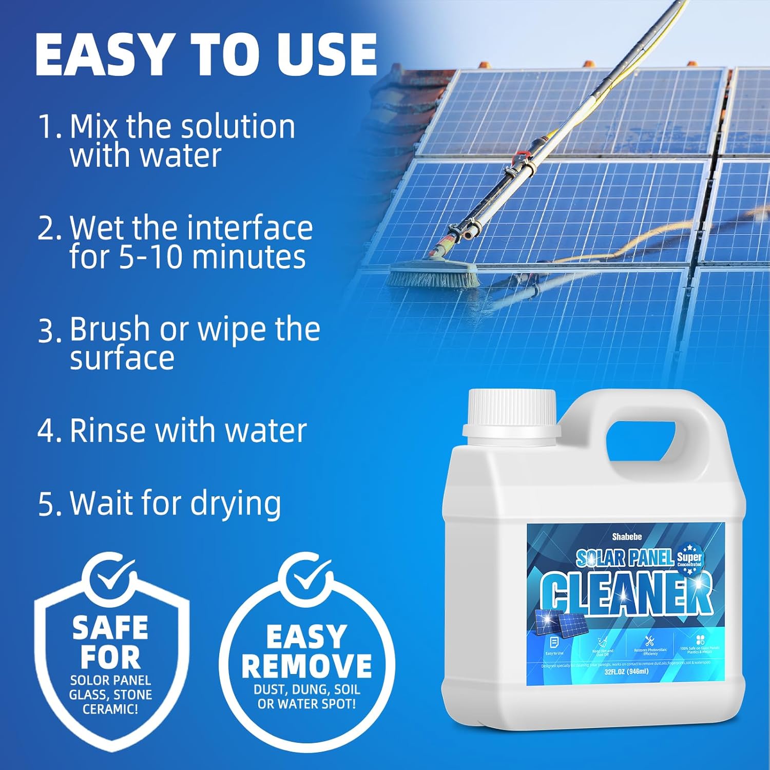 Shabebe Solar Panel Cleaner 32oz (Makes 150 Gallons) - 20X Strength Super Concentrated Glass & Solar Panel Cleaning